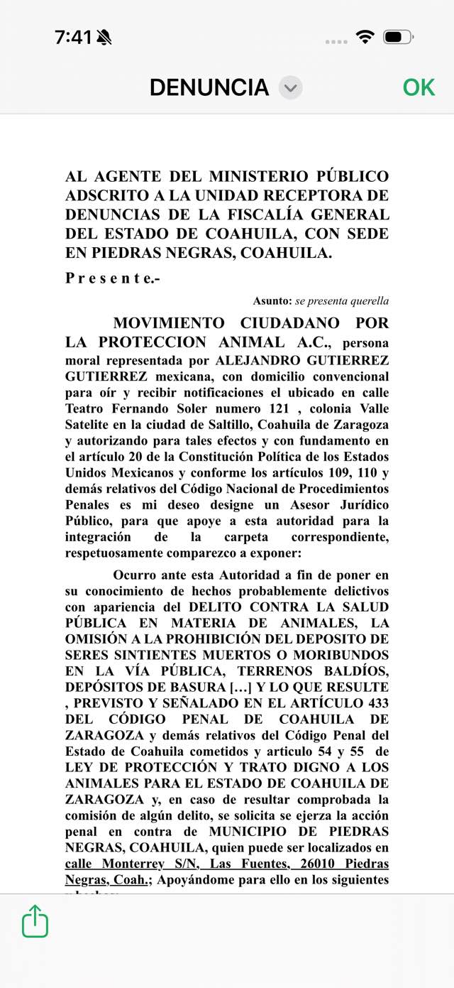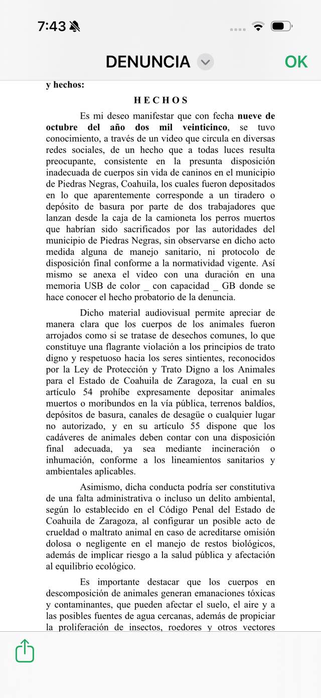 Alejandro Gutiérrez Gutiérrez denunció formalmente el tiradero de perros en el basurero municipal de Piedras Negras, luego de que se viralizara un video donde empleados del Centro de Bienestar Animal arrojan decenas de canes aparentemente muertos al relleno sanitario.