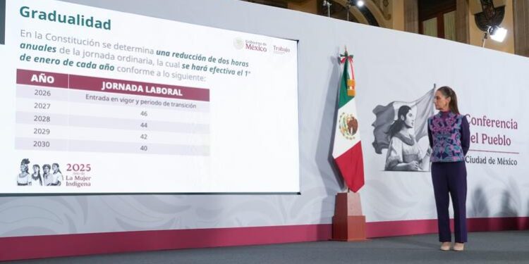 -El gobierno de México presentó la iniciativa acordada con trabajadores y empresarios para reducir gradualmente la jornada laboral de 48 a 40 horas semanales a partir de 2027 hasta 2030.