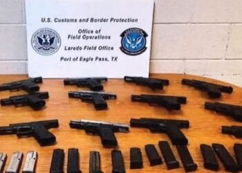 Agentes de Aduana y Protección Fronteriza asignados al Puente Internacional Dos de Eagle Pass, decomisaron un arsenal que un hombre...
