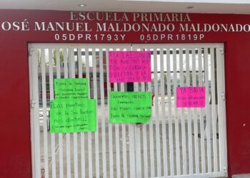 Padres de familia del grupo de cuarto grado de la Escuela Primaria “José Manuel Maldonado” suspendieron clases y tomaron las...