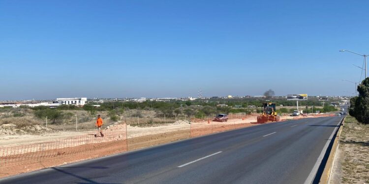 En el sitio es visible la operación de maquinaria pesada que continúa con la preparación del terreno para la incorporación de nuevos carriles en esta importante vialidad, considerada clave para el tránsito comercial.