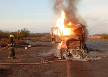 La estructura de un tráiler carbonero fue consumida en su totalidad por el fuego la mañana de este lunes en...