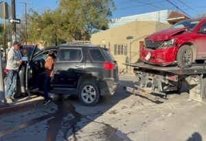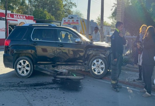Un choque vehicular registrado este jueves en la colonia Buena Vista Sur dejó dos mujeres lesionadas y cuantiosos daños materiales. El percance involucró a Alejandra Salinas, de 40 años, y a Guadalupe Romo, de 60, quienes colisionaron en la intersección del par vial Román Cepeda y la calle Progreso.