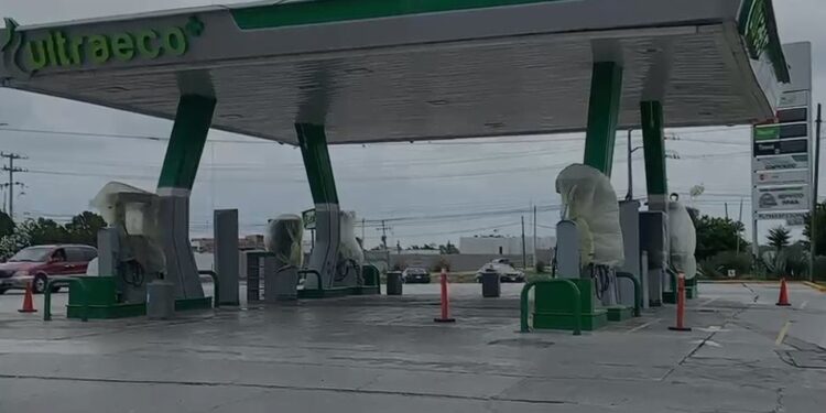 Actualmente, el lugar luce completamente inactivo, con las bombas cubiertas con plástico y conos colocados para impedir la circulación de vehículos en el área.