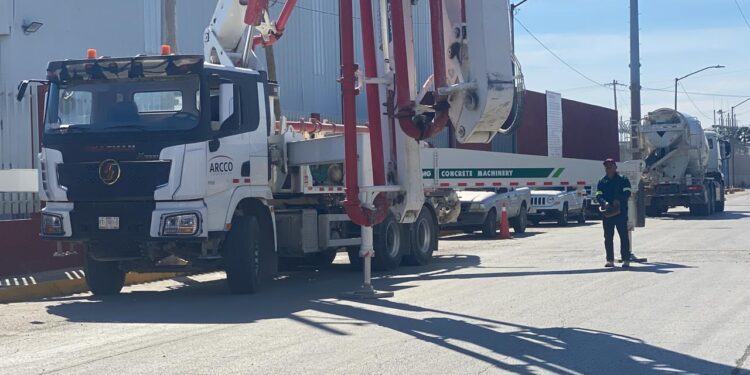 En el sitio, trabajadores se alistaban para llevar a cabo el vaciado de concreto en un tramo del nuevo muro; además, fue posible observar una bomba de hormigón y un camión mezclador de la empresa Arcco que se preparaban para iniciar las maniobras correspondientes.