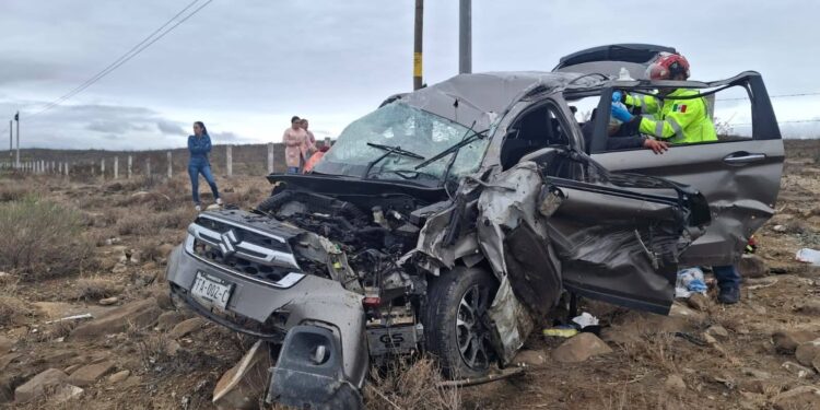 El accidente ocurrió en el kilómetro 45 de la vía federal, en el tramo Kimberly-Santa Cruz, donde elementos de Bomberos atendieron el reporte y localizaron un vehículo volcado con varios pasajeros en su interior.