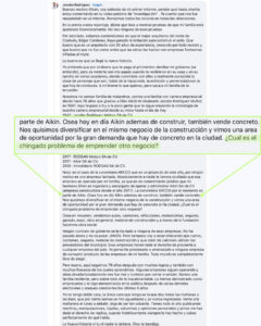 En su respuesta, el alcalde reconoció abiertamente que la concretera Arcco es operada por su familia y que forma parte de Aikin S.A. de C.V., empresa administrada por su hermano. Señaló que la decisión de vender concreto responde a una estrategia de diversificación empresarial ante la alta demanda en la ciudad y cuestionó las críticas con la frase: “¿Cuál es el chingado problema de emprender otro negocio?”