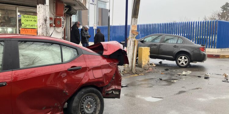 Dos personas resultaron lesionadas en un aparatoso choque registrado la mañana de este miércoles en el cruce de las calles Abasolo y Anáhuac, en la zona Centro de Piedras Negras.