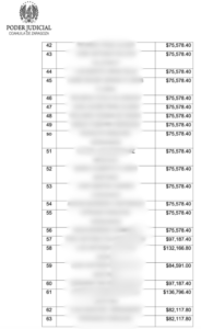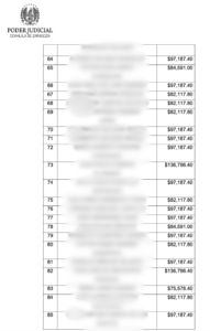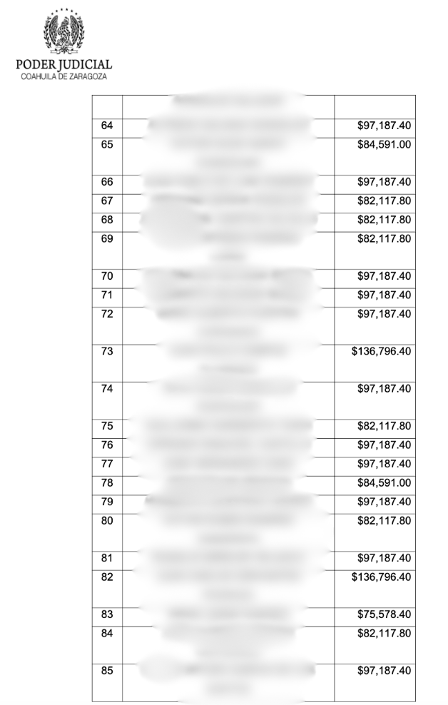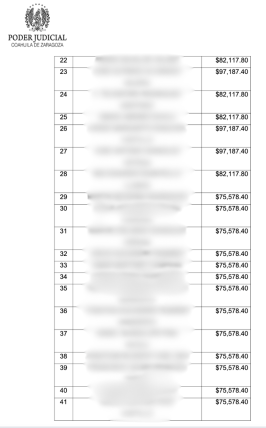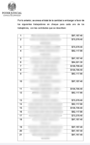 El documento precisa que las cantidades asignadas individualmente oscilan entre 75 mil y 136 mil pesos, para un total de 7 millones 650 mil 693 pesos, los cuales serán entregados a los empleados en caso de que el recurso de queja interpuesto por el Ayuntamiento no prospere.