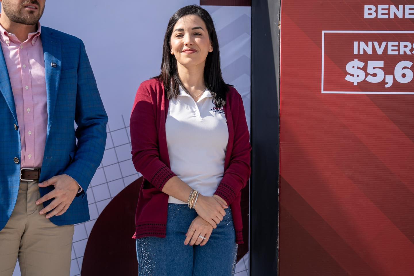 Las imágenes de las lonas colocadas en las tarimas de estos eventos no especifican a qué empresa se le adjudicó el contrato, limitándose únicamente a mostrar datos generales de la obra.