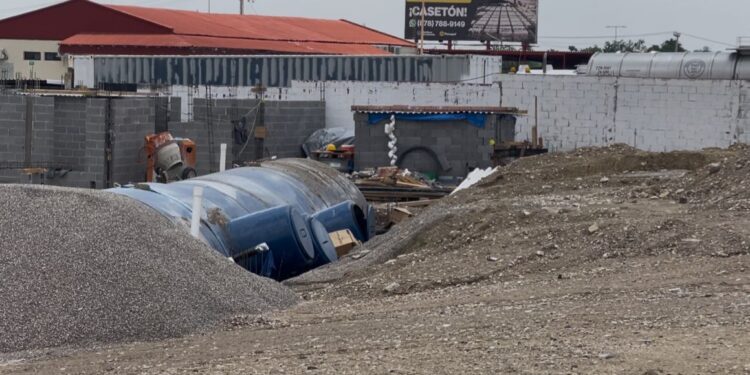Estos depósitos donde se almacena el combustible ya habían sido enterrados y compactado el área de la gasolinera que se construye en el cruce de carretera 57 y bulevar Manuel Pérez Treviño sin embargo, las copiosas lluvias no solo los dejaron al descubierto sino que además flotaron debido a la gran cantidad de lluvia acumulada en esa zona.