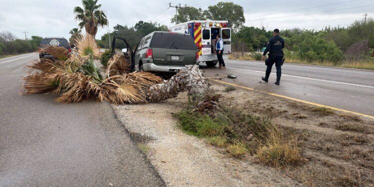 Un automovilista resultó lesionado luego que esta mañana chocó aparatosamente contra una palma del camellón central que divide la carretera entre los municipios de Morelos y Nava, Coahuila.