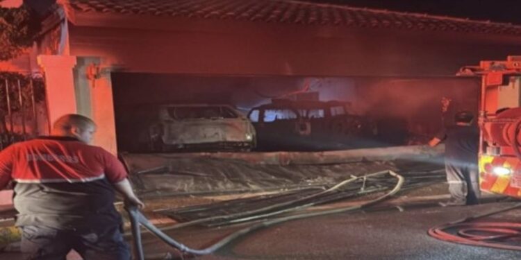 Cuantiosas pérdidas materiales incluyendo dos vehículos consumidos por las llamas, fue el resultado de un incendio ocurrido la madrugada de este viernes en una residencia ubicada sobre privada Dalia en el fraccionamiento Las Fuentes de Piedras Negras.