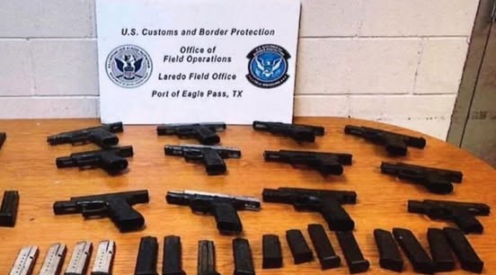 Agentes de Aduana y Protección Fronteriza asignados al Puente Internacional Dos de Eagle Pass, decomisaron un arsenal que un hombre y una mujer pretendían cruzar desde Eagle Pass a Piedras Negras.