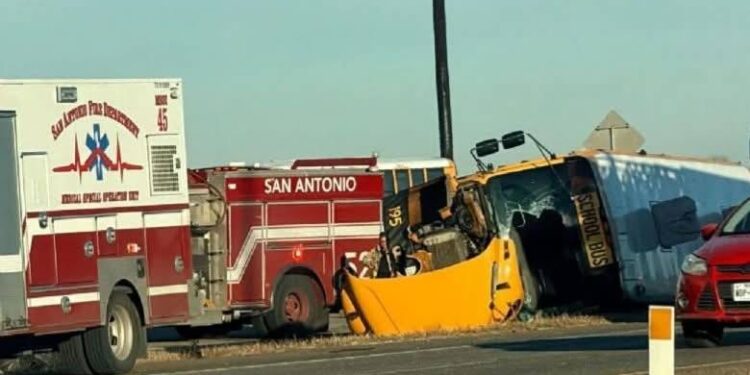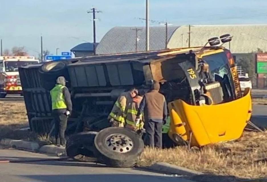 Un autobús escolar con 33 estudiantes a bordo se volcó en el Loop 410; seis personas resultaron con lesiones leves