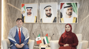 El legislador compartió en sus redes sociales imágenes de su llegada al país árabe, vistiendo una kufiya y traje formal, con la leyenda: “Rumbo a mi primera reunión de la gira en Emiratos Árabes. Empezamos muy bien nuestra gira por Medio Oriente”. Posteriormente, anunció que realizaría una videotransmisión en vivo desde Amán, Jordania, aunque pospuso la charla por coincidir con la conferencia matutina de la presidenta Claudia Sheinbaum.
