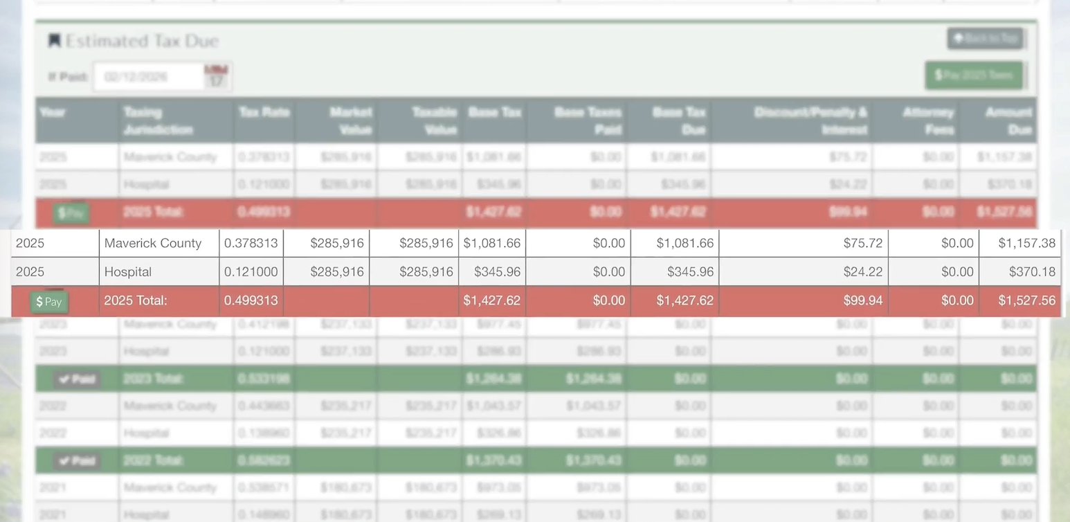 Mientras que el actual juez ha reincidido en atraso de impuestos, en la última década cerca de 150 ciudadanos del condado de Maverick han perdido sus propiedades por motivo de deudas fiscales.