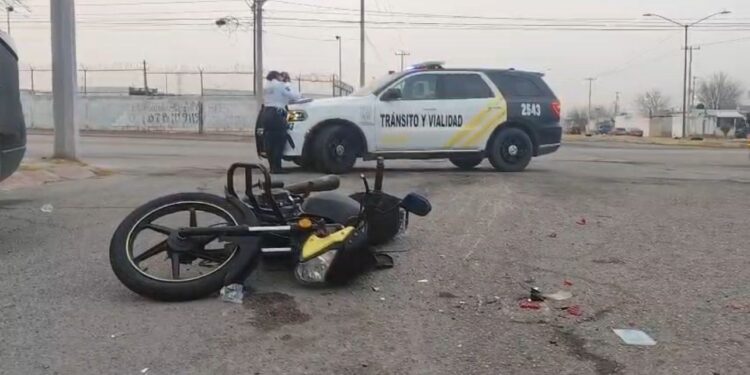 Al intentar incorporarse a la circulación de calle Juan de la Barrera en dirección hacia el bulevar República, la motocicleta se impactó contra una pick up Dodge Ram.
