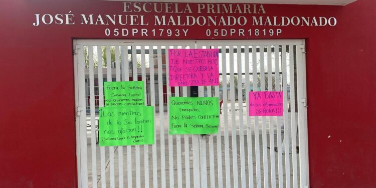 Padres de familia del grupo de cuarto grado de la Escuela Primaria “José Manuel Maldonado” suspendieron clases y tomaron las instalaciones del plantel para exigir el cambio de escuela de un alumno, luego de que la madre del menor obtuviera una orden de restricción contra una de las maestras y la directora.