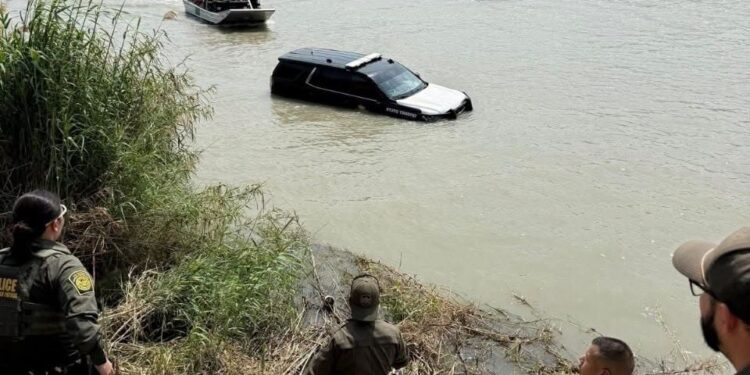 Una patrulla del Departamento de Seguridad Pública de Texas cayó al Río Bravo este viernes en medio de la persecución de un sospechoso al sureste de Laredo, en área cercana a la frontera con Nuevo Laredo, Tamaulipas.