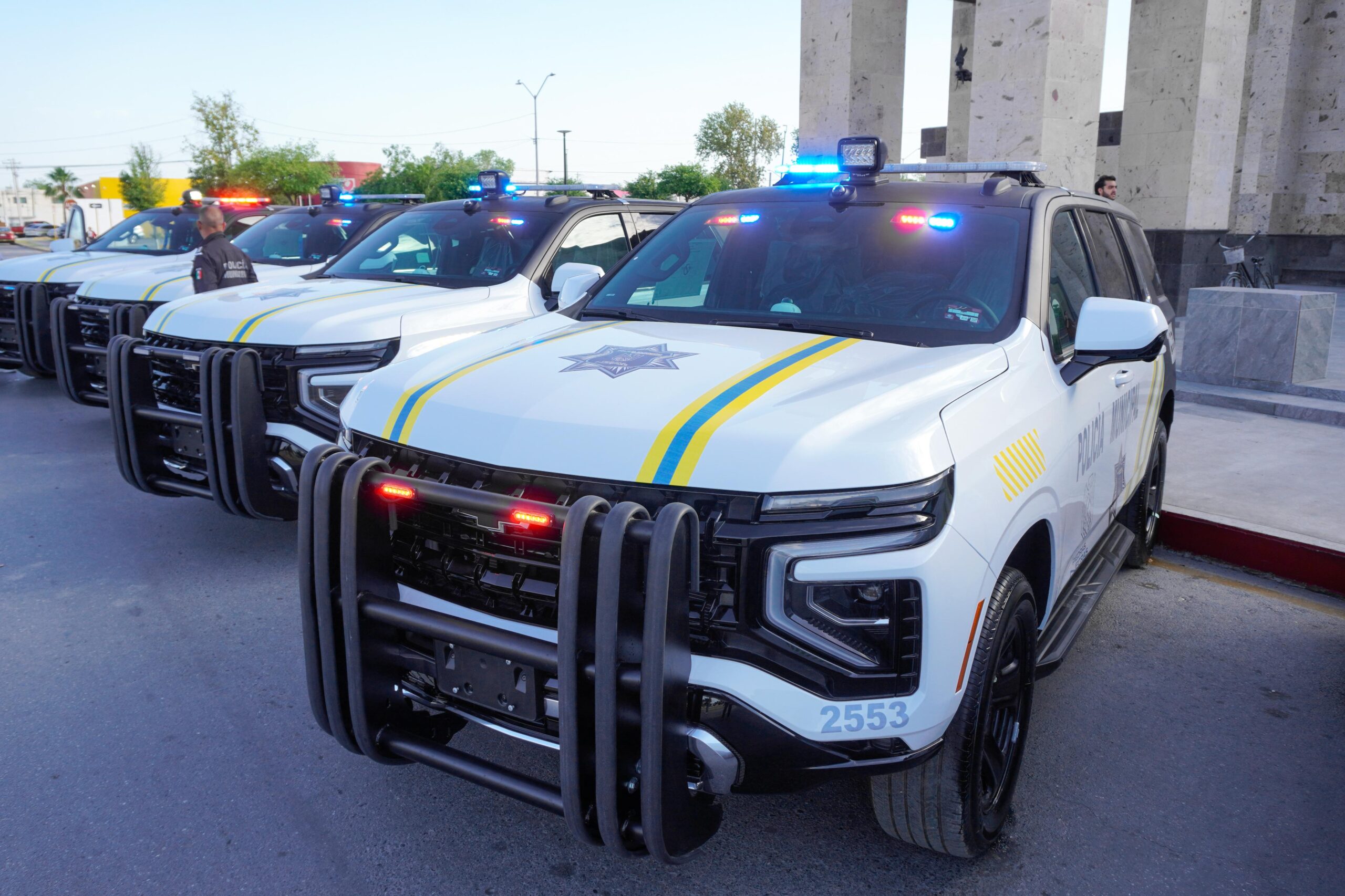 Los agentes policiacos recorrerán la ciudad, para su vigilancia, a bordo de vehículos Tahoe de la marca Chevrolet, con un precio de 2 millones de pesos; y el alcalde mencionó que son especiales para la Policía, y son del mismo tipo que se usa en Eagle Pass o San Antonio, en Estados Unidos.