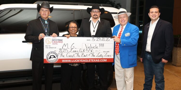 Dentro de las continuas promociones que el Kickapoo Lucky Eagle Casino efectúa entre sus clientes, el pasado fin de semana la señora, María Victoria García, con residencia en Carrizo Springs, Texas ganó una flamante camioneta Lexus 2025.