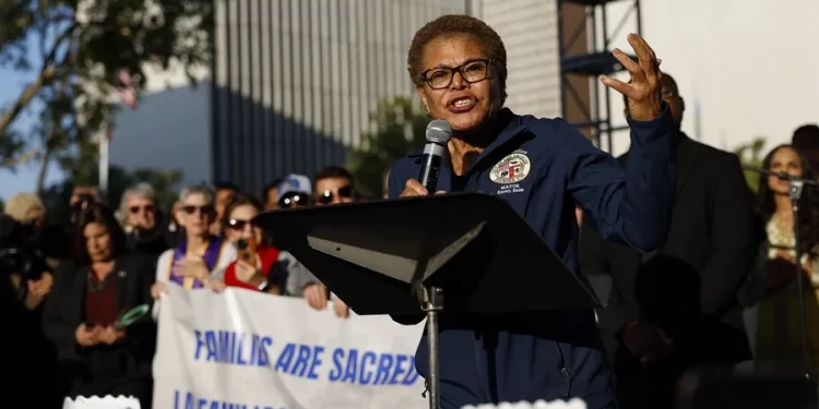 La demanda presentada en el Distrito Central de California nombra como acusados a la alcaldesa de Los Ángeles, la demócrata Karen Bass, al concejo municipal y al presidente del concejo municipal, Marqueece Harris-Dawson.