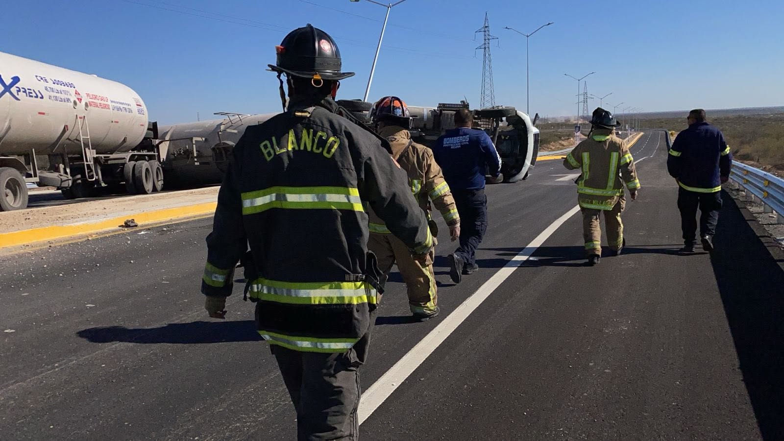Una pipa que transportaba combustible volcó este jueves en la entrada de Acuña, lo que movilizó de inmediato al Departamento de Bomberos, que realizó maniobras en la zona para controlar la situación y prevenir riesgos.