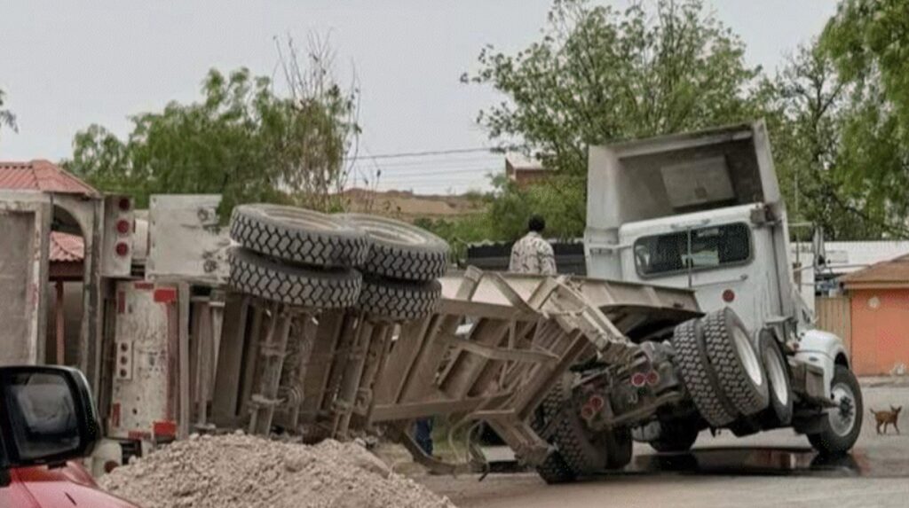 Un accidente se registró la mañana de este jueves en la colonia Villa de Fuente, en Piedras Negras, luego de que la plataforma de un tráiler volcara mientras realizaba maniobras en una obra en construcción.